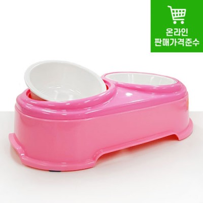 슬기펫 멜라민 2구 쌍식기 (핑크)